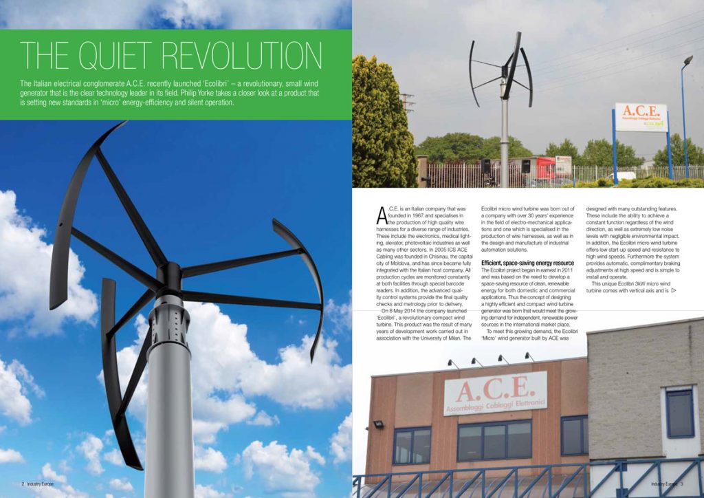 The Italian electrical conglomerate A.C.E. recently launched ‘Ecolibri’ – a revolutionary, small wind generator that is the clear technology leader in its eld. Philip Yorke takes a closer look at a product that is setting new standards in ‘micro’ energy-ef ciency and silent operation.